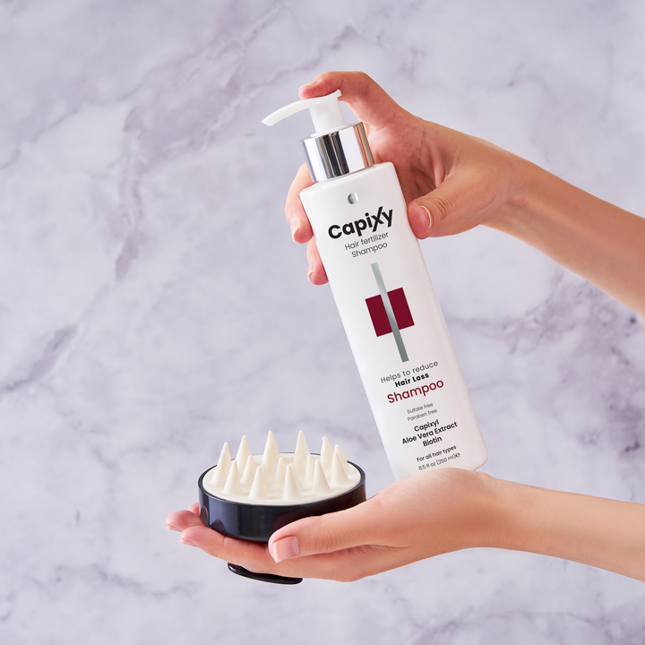 CAPIXY Shampoo is a sulfate- and paraben-free formula developed to help prevent hair loss while gently cleansing the scalp. Enriched with CapixylTM, Aloe Vera Extract, Biotin, and essential vitamins & minerals, it supports scalp health, strengthens roots, prepares the scalp to receive hair loss treatments, and promotes healthier, fuller hair.